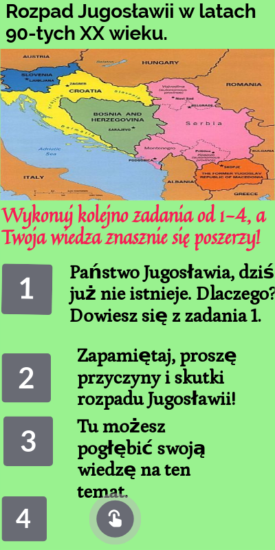 Państwo Jugosławia, dziś już nie istnieje. Dlaczego? Dowiesz się z zadania 1.