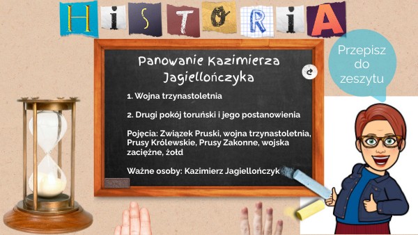 1. Wojna trzynastoletnia 2. Drugi pokój toruński i jego postanowienia Pojęcia: Związek Pruski, wojna trzynastoletnia, Prusy Królewskie, Prusy Zakonne, wojska zaciężne, żołd Ważne osoby: Kazimierz Jagiellończyk