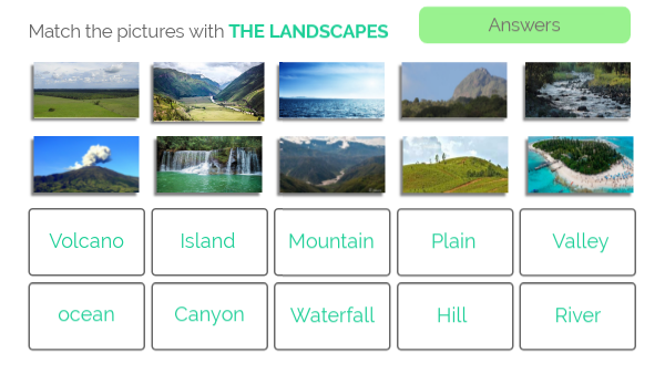 Match the pictures with THE LANDSCAPES