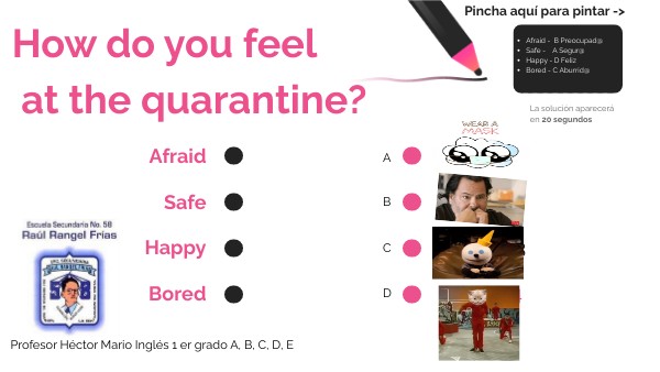 HI TE SALUDA TU TEACHER HECTOR MARIO, ESPERO ESTES SIGUIENDO LAS INDICACIONES DE LAS AUTORIDADES. TE DEJO ESTE PEQUEÑO JUEGO PARA QUE RECUERDES LAS EMOCIONES EN INGLÉS.