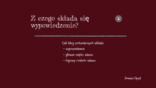 Cykl lekcji poświęconych składni: - wypowiedzenie - główne części zdania - logiczny rozbiór zdania Joanna Opyd