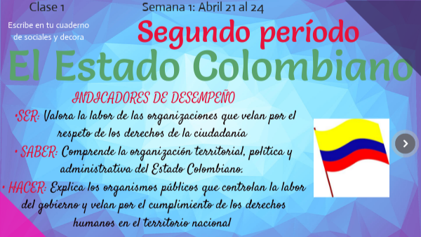 Hemos aprendido mucho sobre el ESTADO COLOMBIANO durante este período, así que es hora de poner en práctica tu aprendizaje a través de una actividad en clase.