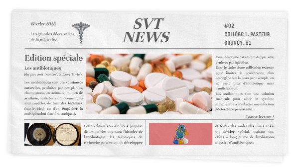 Cette édition spéciale vous propose divers articles exposant l'histoire de l'antibiotique, les techniques de recherche permettant de développer