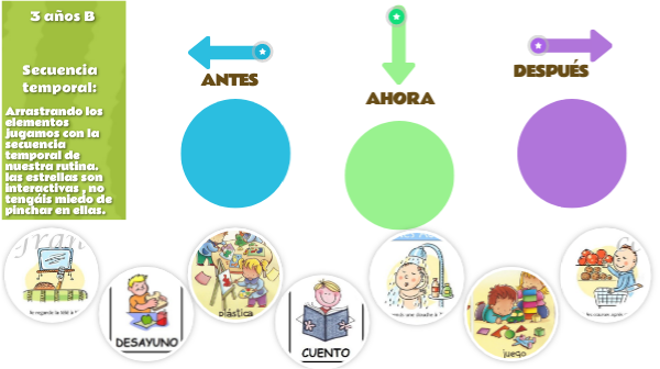 Arrastrando los elementos jugamos con la secuencia temporal de nuestra rutina.las estrellas son interactivas , no tengáis miedo de pinchar en ellas.