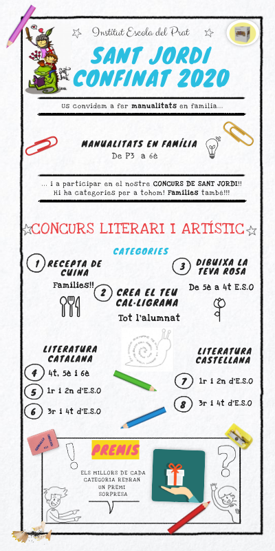 ... i a participar en el nostre CONCURS DE SANT JORDI!! Hi ha categories per a tohom! Families també!!!