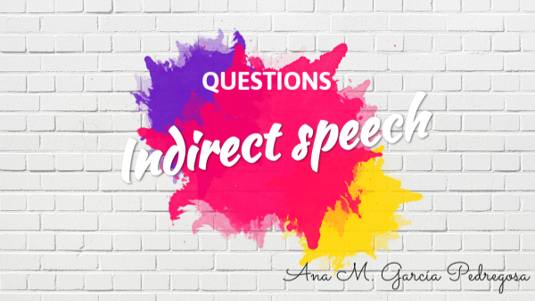 - Reporting verbs: ask, enquire, wonder, want to know.- No se usará THAT. Nunca. - Se producirán todos los cambios que vimos en las statements: pronombres, adjetivos posesivos, demostrativos, tiempos verbales, expresiones temporales, here,... - Desaparece el signo de interrogación. - WORD ORDER: Cambiamos el orden de palabras de una pregunta al orden de palabras de una oración enunciativa. Esta sería la estructura de una pregunta indirecta: Subject + verb + complements.