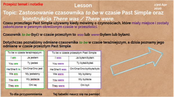Topic: Zastosowanie czasownika to be w czasie Past Simple oraz konstrukcja There was / There were.