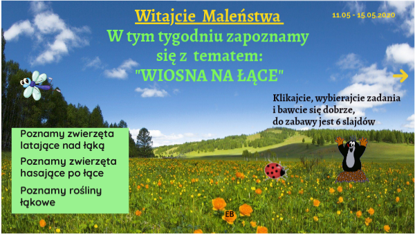 Witajcie Maleństwa W tym tygodniu zapoznamy się z tematem: "WIOSNA NA ŁĄCE"