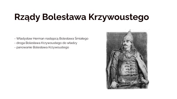- Władysław Herman następcą Bolesława Śmiałego- droga Bolesława Krzywoustego do władzy - panowanie Bolesława Krzywoustego