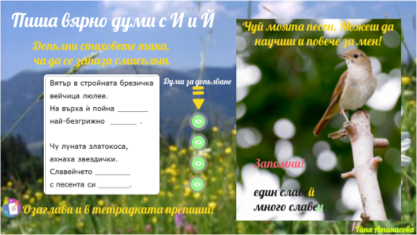 Как ще запишеш думите? С И или с Й?За да не сгрешиш, раздели думите на срички.