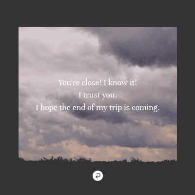 You're close! I know it!I trust you. I hope the end of my trip is coming.