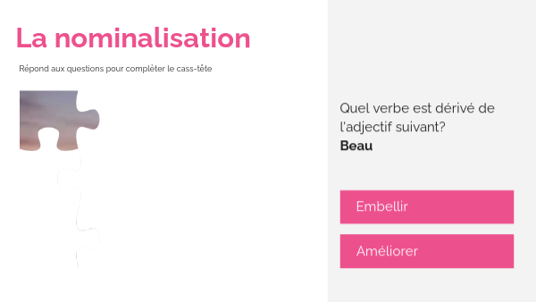 Quel verbe est dérivé de l'adjectif suivant?Beau