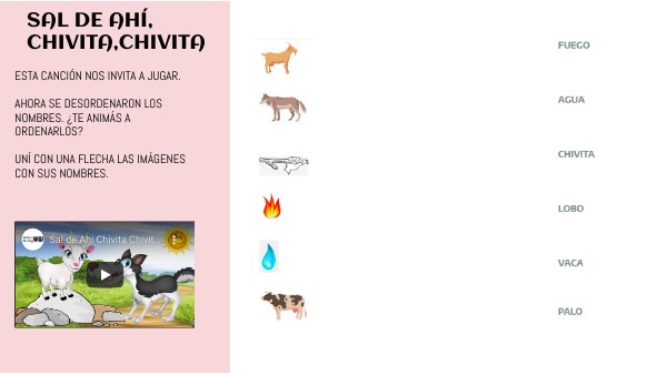 ESTA CANCIÓN NOS INVITA A JUGAR. AHORA SE DESORDENARON LOS NOMBRES. ¿TE ANIMÁS A ORDENARLOS? UNÍ CON UNA FLECHA LAS IMÁGENES CON SUS NOMBRES.