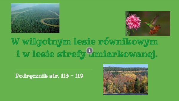 Poznałeś/aś już występowanie, warunki klimatyczne oraz świat roślin i zwierząt wilgotnego lasu równikowego oraz lasów strefy umiarkowanej. Dowiedz się teraz, jak wygląda życie mieszkańców w tych strefach krajobrazowych. W tym celu przeczytaj tekst w podręczniku na str. 116 "Życie mieszkańców strefy wilgotnych lasów równikowych" oraz na str. 117 "Życie mieszkańców strefy lasów liściastych mieszanych."