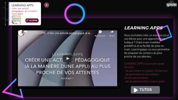 Vous souhaitez créer un exercice pour vos élèves avec une approche plus ludique ? Grâce à ses modèles prédéfinis et sa facilité de prise en main, Learningapps va vous permettre de proposer du contenu au plus proche de vos attentes. LEARNING APPS a pour principale fonction : - de permettre la création d'exercices - de permettre la consultation d'exercices existants - de les personnaliser à votre guise