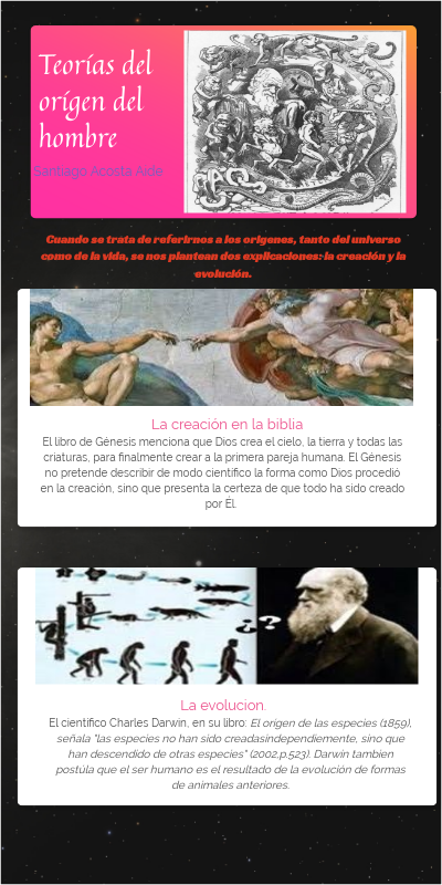 Cuando se trata de referirnos a los origenes, tanto del universo como de la vida, se nos plantean dos explicaciones: la creación y la evolución.