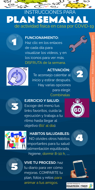 Instrucciones sobre el funcionamiento del plan semanal de actividad física en casa propuesto para el alumnado del IES Bajo Aragón durante el confinamiento por COVID-19