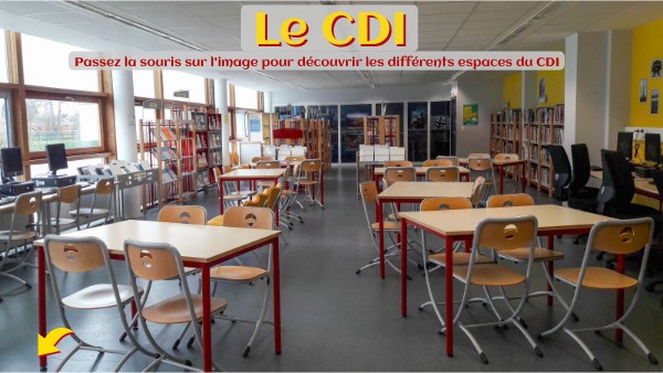 Passez la souris sur l'image pour découvrir les différents espaces du CDI