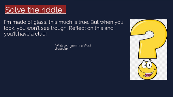 I'm made of glass, this much is true. But when you look, you won't see trough. Reflect on this and you'll have a clue!