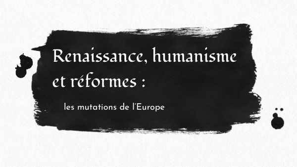 • Apparue au XVème siècle, la Renaissance est une période de renouvellement artistique qui trouve son origine dans un intérêt pour la pensée et les formes de l’Antiquité. // Un nouveau courant de pensée voit le jour : l’Humanisme : mouvement intellectuel qui se fonde sur des textes antiques et qui placent l’être humain et son bonheur au centre de leurs préoccupations.• Ces deux courants s’accompagnent au cours du XVIème siècle, de bouleversements religieux importants dans le cadre des réformes religieuses initiés par ceux qu’on appelle les protestants . • Problématique : En quoi les mutations intellectuelles, artistiques et religieuses des XVème et XVIème siècles transforment-elles profondément l’Europe ?
