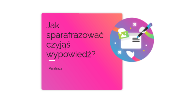PARAFRAZA JĘZYKOWA, czyli wyrażenie tej samej treści innymi słowami, np.: WYPOWIEDŹ: Perfumy przyjemnie pachną. MOŻNA SPARAFRAZOWAĆ TAK: Perfumy mają przyjemny zapach.