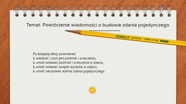 Po dziejszej lekcji powinieneś:& wiedzieć, czym jest podmiot i orzeczenie, & umieć wskazać podmiot i orzeczenie w zdaniu, & umieć wskazać związki wyrazów w zdaniu, & umieć narysować wykres zdania pojedynczego.