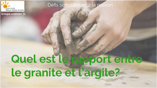 Dans ce défi, tu dois expliquer quel est le rapport entre: -une roche: le granite -et un matériau très utilisé: l'argile.