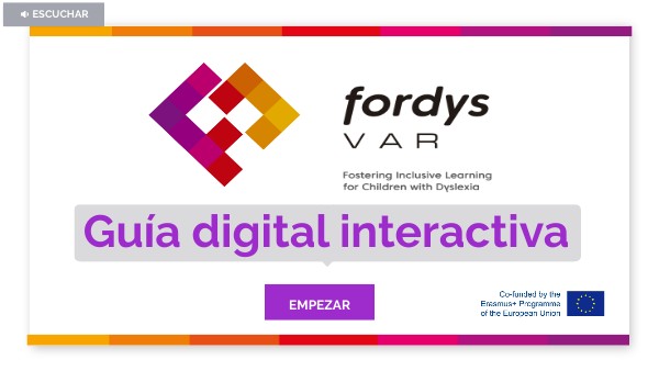 El objetivo de la guía digital interactiva es facilitar el uso y manejo de las aplicaciones de RA y RV, generadas dentro el proyecto Fordys-Var, a los niños y niñas con dislexia, las familias, profesionales y profesorado que trabajan en el ámbito de la dislexia.