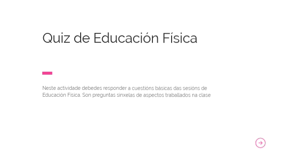 Neste actividade debedes responder a cuestións básicas das sesións de Educación Física. Son preguntas sinxelas de aspectos traballados na clase