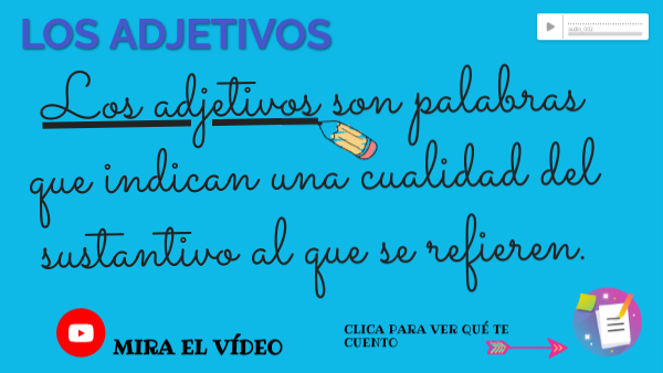 Los adjetivos son palabras que indican una cualidad del sustantivo al que se refieren.