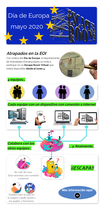 Con motivo del Día de Europa, el departamento de Actividades Extraescolares os invita a participar en un Escape Room Virtual que estará disponible desde el lunes 4.
