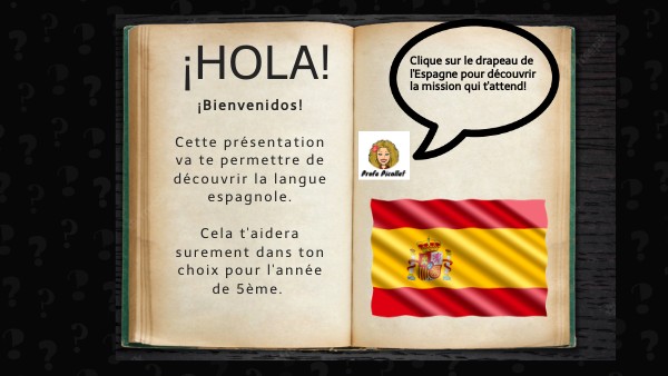 ¡Bienvenidos! Cette présentation va te permettre de découvrir la langue espagnole. Cela t'aidera surement dans ton choix pour l'année de 5ème.