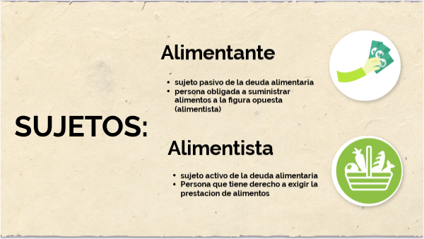 - persona obligada a suministrar alimentos a la figura opuesta (alimentista)