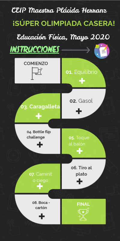 Estimados alumnos/as del CEIP Maestra Plácida Herranz. Os he preparado unos retos divertidos para que juguéis en familia. Si no se anima nadie, puedes también practicar individualmente. ¡¡Que te diviertas!!