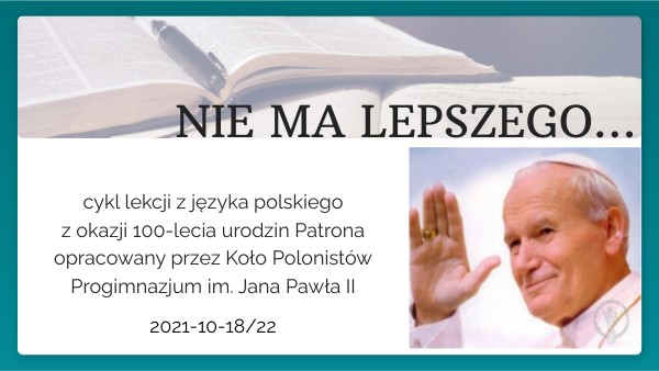 cykl lekcji z języka polskiegoz okazji 100-lecia urodzin Patrona opracowany przez Koło Polonistów Progimnazjum im. Jana Pawła II