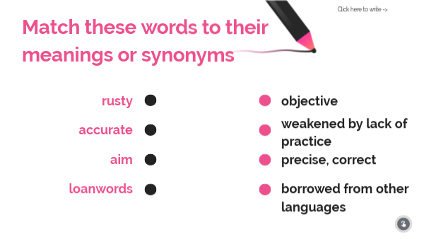 Match these words to their meanings or synonyms