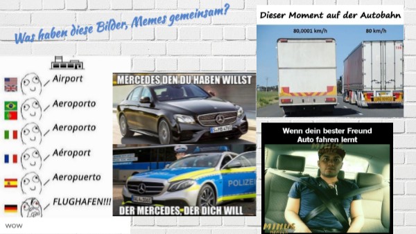 Stwórz mem po niemiecku z wykorzystaniem generatora np. https://www.kapwing.com/meme-maker Pasujący do tematu np. sport, sportowcy, zakupy, środki transportu, podróżowanie, przebieg dni.... i prześlij do mnie.