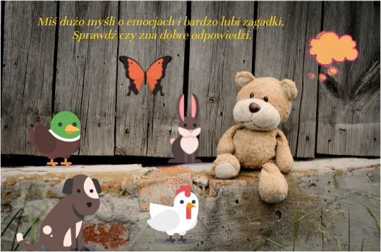 Miś dużo myśli o emocjach i bardzo lubi zagadki. Sprawdź czy zna dobre odpowiedzi.