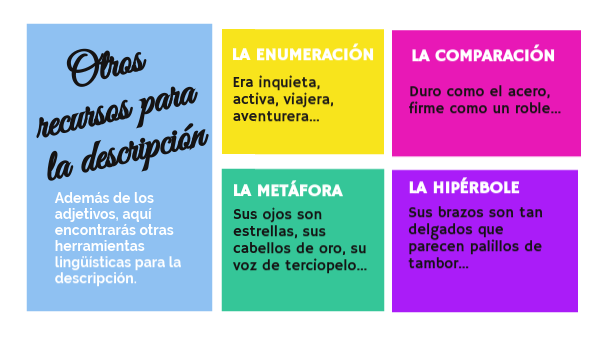 Además de los adjetivos, aquí encontrarás otras herramientas lingüísticas para la descripción.