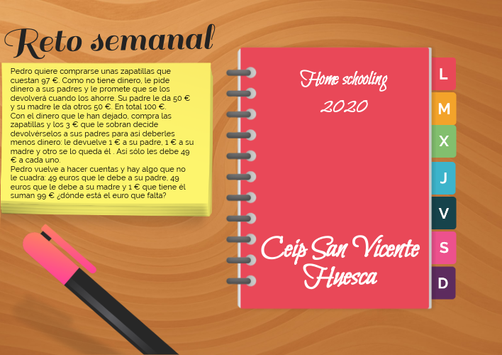 Pedro quiere comprarse unas zapatillas que cuestan 97 €. Como no tiene dinero, le pide dinero a sus padres y le promete que se los devolverá cuando los ahorre. Su padre le da 50 € y su madre le da otros 50 €. En total 100 €. Con el dinero que le han dejado, compra las zapatillas y los 3 € que le sobran decide devolvérselos a sus padres para así deberles menos dinero: le devuelve 1 € a su padre, 1 € a su madre y otro se lo queda él . Así sólo les debe 49 € a cada uno. Pedro vuelve a hacer cuentas y hay algo que no le cuadra: 49 euros que le debe a su padre, 49 euros que le debe a su madre y 1 € que tiene él suman 99 € ¿dónde está el euro que falta?