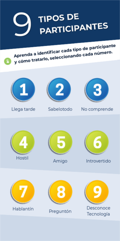 Aprenda a identificar cada tipo de participante y cómo tratarlo, seleccionando cada número.