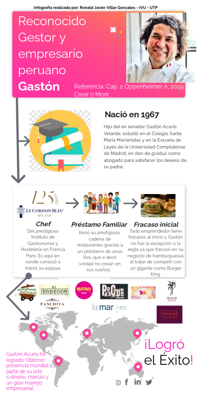 Gastón Acurio ha logrado: Obtener presencia mundial a partir de su arte culinario, marcas y un gran manejo empresarial..