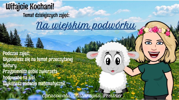 Podczas zajęć:Wypowiesz się na temat przeczytanej lektury. Przypomnisz sobie zwierzęta hodowane na wsi. Wykonasz zadania matematyczne.
