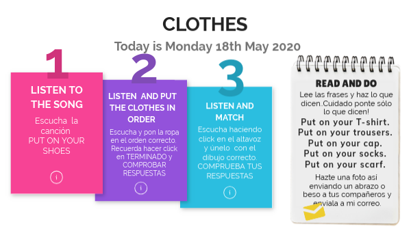 Escucha y pon la ropa en el orden correcto. Recuerda hacer click en TERMINADO y COMPROBAR RESPUESTAS