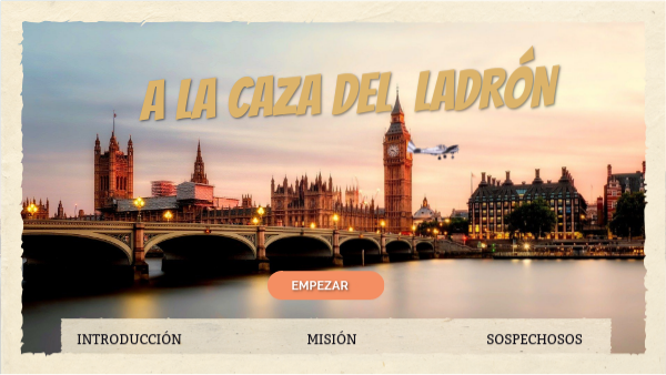 Esta es la última prueba, Victoria Watson y Jorge Holmes han localizado en el mapa de Londres a todos los sospechosos.Para acceder a su informe policial, y así poder descubrir a quién corresponden las pistas y los objetos encontrados estos días tendréis que contestar a unas preguntas. Cuando tengáis todos los informes podréis averiguar quién robó el cuadro. Pulsa en empezar y... ¡¡ADELANTE!!