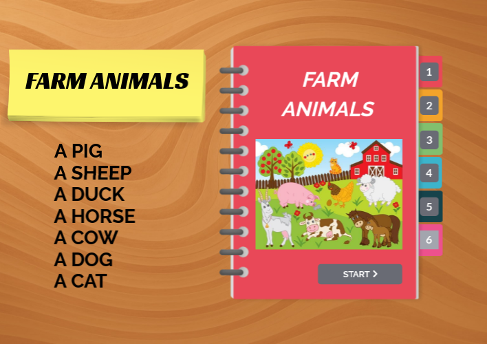 A PIGA SHEEP A DUCK A HORSE A COW A DOG A CAT