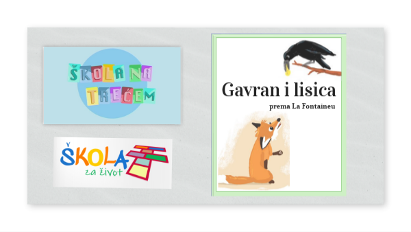Gavran je negdje u selu ukrao komad sira, doletio s njime do obližnje šume i sjeo na granu, držeći sir u kljunu. Vidjela ga lisica kojoj se prohtjelo sira. Stade zato ispod drveta i poče lukavo govoriti gavranu: