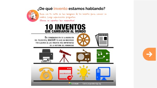 Pasa con tu ratón en las imágenes de los inventos para conocer su nombre. Luego aparecerán preguntas. ¡Piensa en apuntar las respuestas!