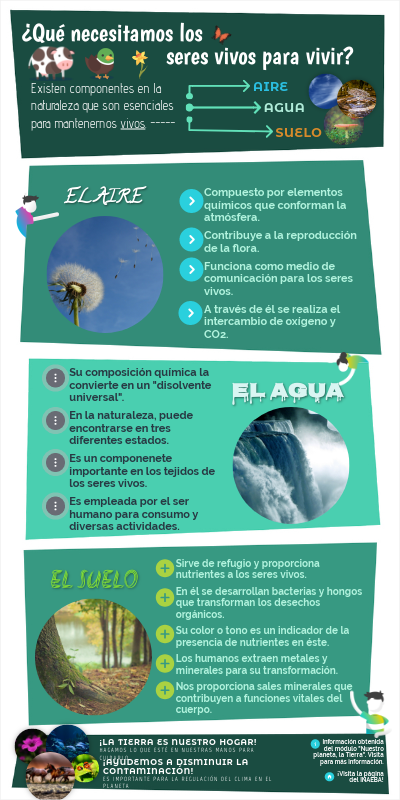 Material didáctico digital de apoyo al aprendizaje del tema "¿Qué necesitamos los seres vivos para vivir?", contenido en la Unidad 2 del módulo "Nuestro Planeta, la Tierra".
