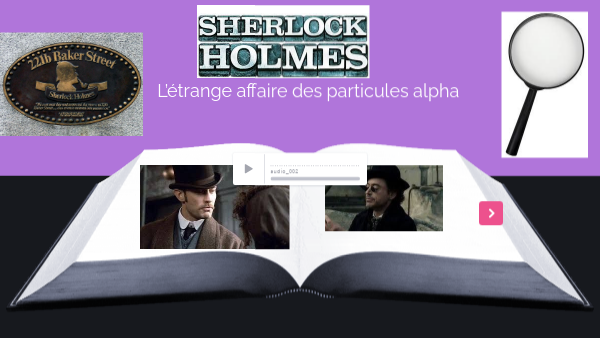 Il s'agit d'un quizz de physique de niveau 3ème, 2nde ou 1ère sur la fameuse expérience de Rutherford. Cette activité permet de comprendre la structure lacunaire d'un atome. Les deux protagonistes sont le célèbre détective Holmes et son ami, le docteur Watson.